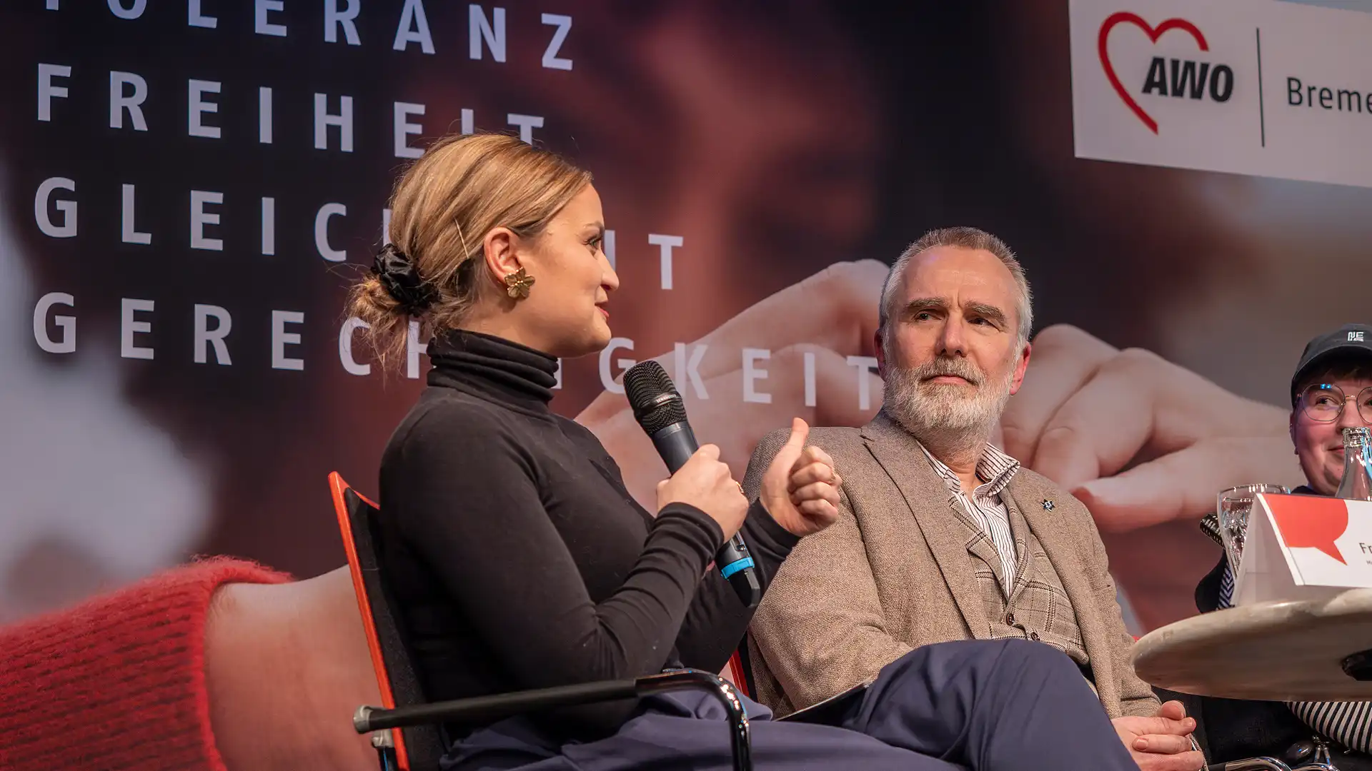 Swantje Schäfer, Student*in und politische Aktivistin, betonte, wie wichtig es für die Persönlichkeitsbildung von jungen Menschen sei, sich auszuprobieren, sich verschiedenen Gruppen anzuschließen und vielleicht auch verschiedene Netz-Identitäten auszuleben: „Es herrscht schon auch Verunsicherung bei jungen Leuten: Was kann ich posten, wo kann ich aktiv sein, welche Auswirkungen hat das auf Bewerbungen für einen neuen Job?“ Lea von der Mosel, Referentin für Öffentlichkeitsarbeit und Social Media bei der Arbeitnehmerkammer, mahnte Differenzierung in der Bewertung der sozialen Netze an: „In Karriere- und Berufsnetzwerken herrscht selbst bei sehr konträren Auffassungen und Meinungen ja eine viel zivilisiertere Debattenkultur als bei Facebook oder X.“