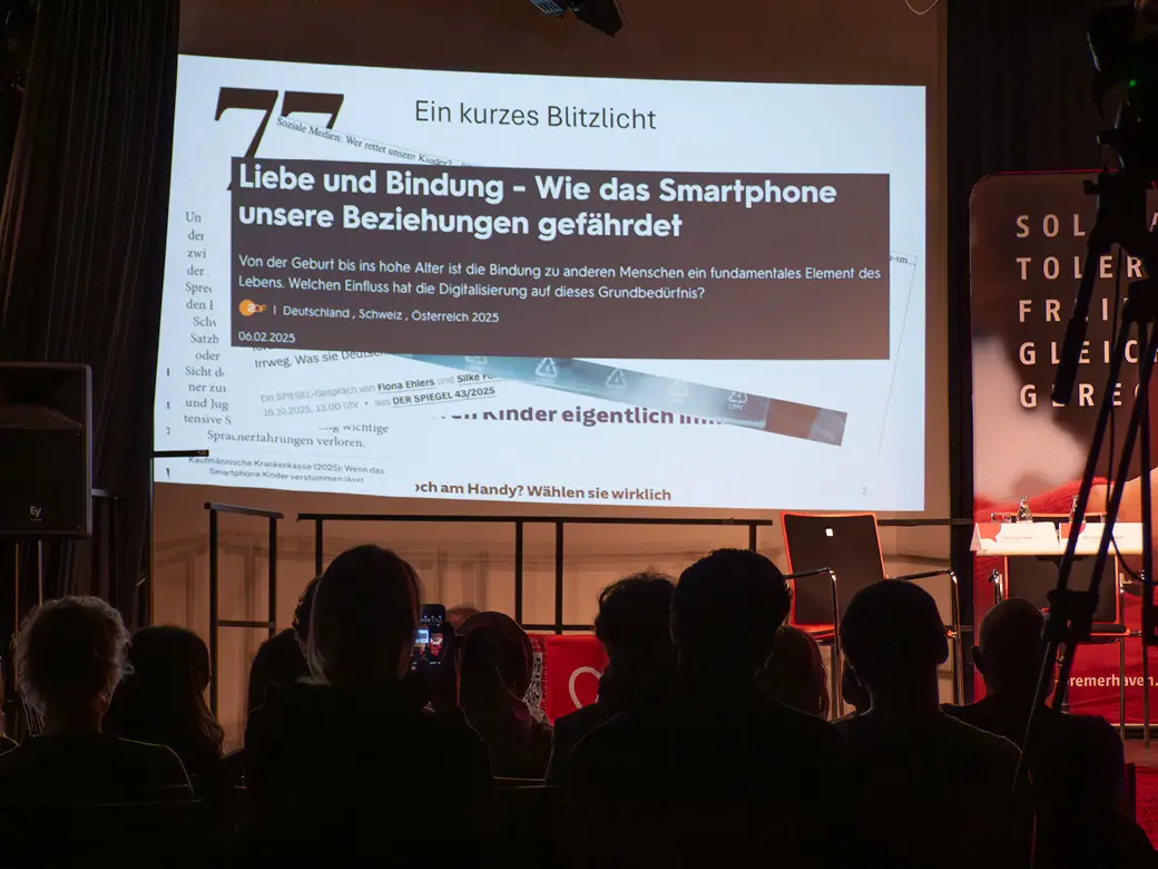 Wissenschaftlerin Dr. Julia Kernbach betonte, die Intensität des Themas reiße nicht ab und werde durch Künstliche Intelligenz (KI) noch weiter an Brisanz gewinnen. Sie zitierte mehrere Studien, aus denen eindeutig hervorgeht, dass Kinder und Jugendliche deutlich mehr Zeit an Bildschirmgeräten verbringen, als gut für sie ist: „Das raubt Zeit für Dinge, die für die Entwicklung zwingend notwendig sind. Und das kann altersspezifisch langfristige Folgen haben.“ Besonders bei Kleinkindern entstehen Bindungsstörungen, wenn die Eltern immer das Smartphone in der Hand haben.